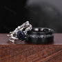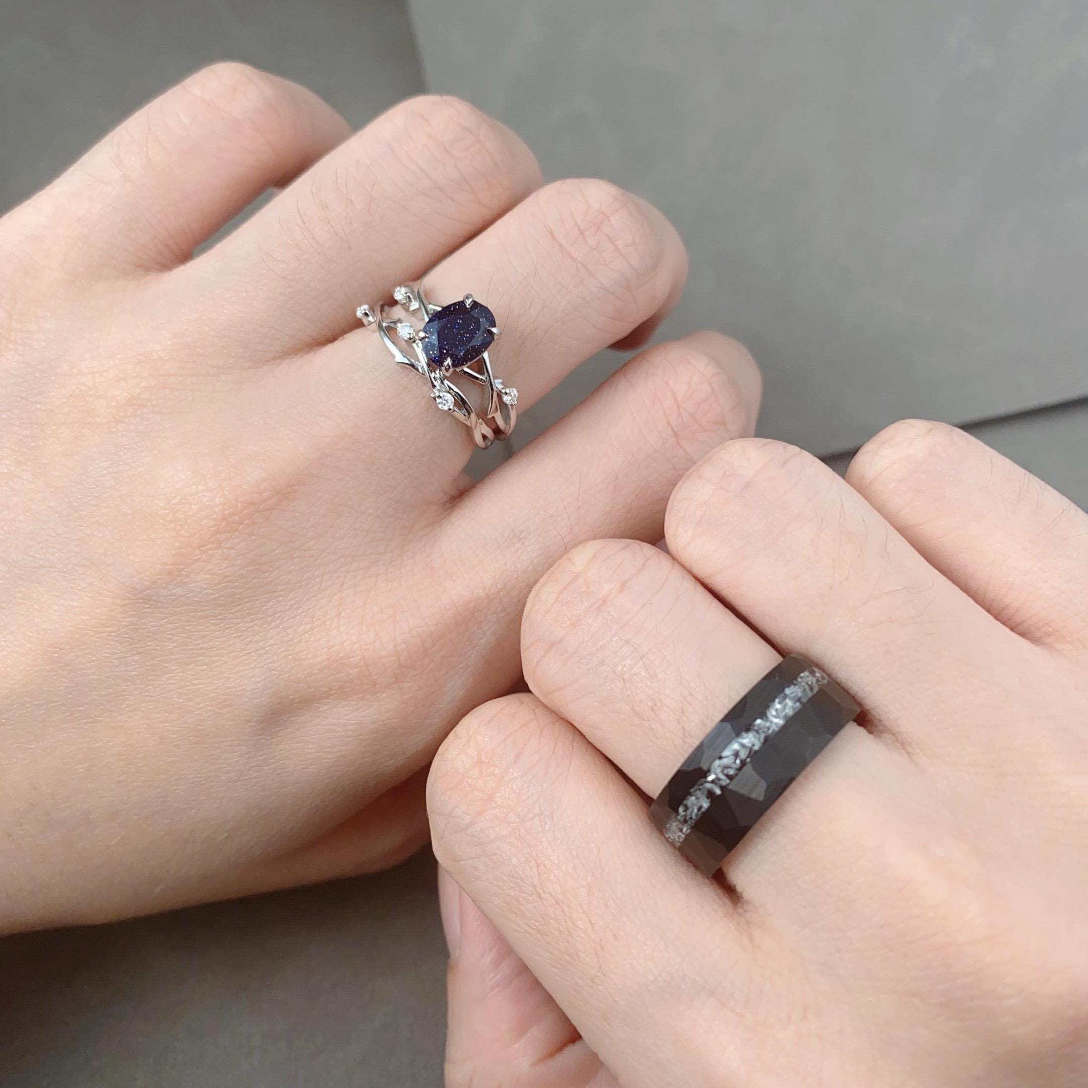 Galaxy Blue Sandstone Couples Ring Set Mens Meteorite Ring Unique His and Hers Wedding Band Art Deco Twig Bridal Set Promise Ring for Couple
