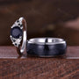 Galaxy Sandstone Couples Ring Set, Sterling Silver His and Hers Wedding Band, Mens Blue Sandstone Ring, Outer Space Ring, Leaf Floral Ring