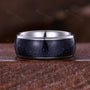 ?His ring is white gold Tungsten Carbide wite galaxy sandstone inlay.