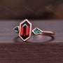 Garnet Emerald Engagement Ring Rose Gold Three Stone Ring For Women Hexagon Cut Garnet Ring Unique Kite Emerald Bridal Ring Birthstone Gems
