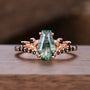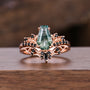 Gothic Bat Wing Moss Agate Engagement Ring Unique Rose Gold Black Spinel Wedding Ring Vampire Bridal Ring Set