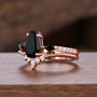 Gothic Coffin Shaped Black Onyx Wedding Ring Set Unique Moissanite Curved Band Black Gem Engagement Promise Ring