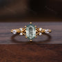 ►Center stone: 5x9mm long hexagon cut green moss agate