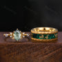 Green Moss Agate Couples Ring Yellow Gold His and Hers Matching Ring Set Mens Green Opal Ring Anniversary Gift For Men and Women Retro Ring