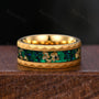 ►His ring is Yellow Gold and Tungsten Carbide with green opal and 24k gold leaf inlay.