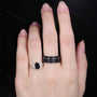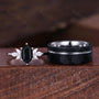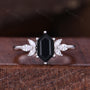 Hexagon black onyx couple ring vintage Unique Marquise cut Diamond Cluster ring White gold His and Hers wedding band Mens hammered band