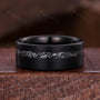 ►His ring is Black Gold Tungsten Carbide with meteorite inlay.