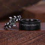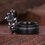Hexagon Black Rutilated Quartz Couples Ring Black Gold Promise Ring Set Art Deco His and Hers Wedding Band Mens Meteorite Ring Black Rings