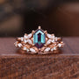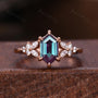 Hexagon cut Alexandrite Engagement ring set Vintage open gap wedding band Rose gold Cluster shank leaf Bridal set Anniversary ring gift