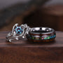 Hexagon cut Alexandrite Ring Set For Couples, His and Hers Wedding Band, Silver & Tungsten Wedding Band, Matching Nature Inspired Ring Set
