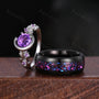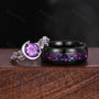 Hexagon cut Amethyst Couples Ring Set Silver Unique Moon Engagement Ring Mens Crushed Amethyst Ring His and Hers Wedding Band Promise Ring