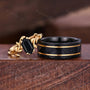 ►His ring is Yellow Gold and Black Tungsten Carbide with sandstone inlay.