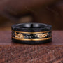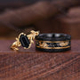 ►His ring is Yellow Gold and Black Tungsten Carbide with 24k gold leaf and Meteorite inlay.