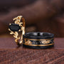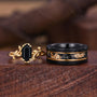 Hexagon cut Black onyx Couples Ring Yellow Gold Matching Ring Set His and Hers Wedding Band Twig Leaf Ring Couple Black Onyx Promise Rings