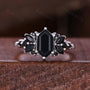 Hexagon cut Black Onyx Engagement Ring Unique Cluster Ring For Women Marquise Black Spinel Wedding Ring Vintage Black Gemstone Promise Ring