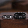 Hexagon cut Black Rutilated Quartz Couples Ring Black Gold Matching Ring Set His and Hers Wedding Band Promise Ring For Men For Women