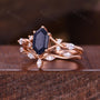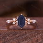 Hexagon cut Blue Sandstone Engagement ring set Vintage marquise diamond wedding band Rose gold Cluster stacking Bridal set Anniversary ring