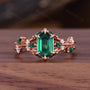 Hexagon Cut Emerald Engagement Ring Nature Inspired Unique Fairytale Rose Gold Wedding Ring Green Leaf Branch Cluster Ring Promise Ring