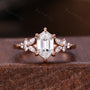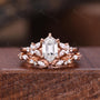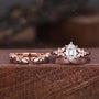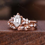 Hexagon cut Moissanite Engagement ring set Vintage open gap wedding band Rose gold Cluster shank leaf Bridal set Anniversary ring gift