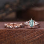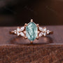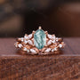 Hexagon cut Moss Agate Engagement ring set Vintage open gap wedding band Rose gold Cluster shank leaf Bridal set Anniversary ring gift