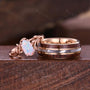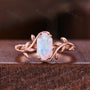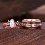 Hexagon cut White Opal Couples Ring Set Rose Gold Twig Leaf Ring His and Hers Wedding Band Mens Tungsten Ring October Anniversary Rings
