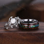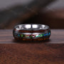 ►His ring is Silver Tungsten Carbide with Hawaiian Koa and abalone