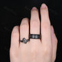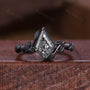 Kite Cut Black Rutilated Quartz Couples Ring Black Gold Promise Ring Set Simple His and Hers Wedding Band Mens Tungsten Ring Vine Leaf Ring