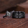 Here we have a Kite Cut Black Rutilated Quartz Couples Ring Black Gold Promise Ring Set Simple His and Hers Wedding Band Mens Tungsten Ring Vine Leaf Ring