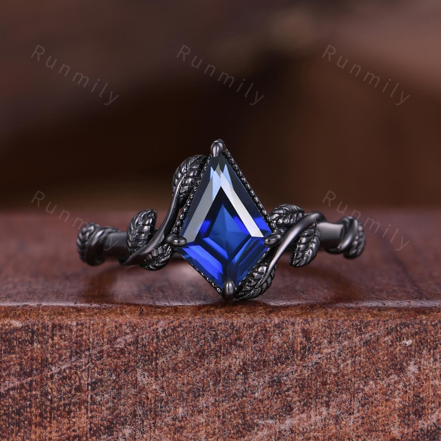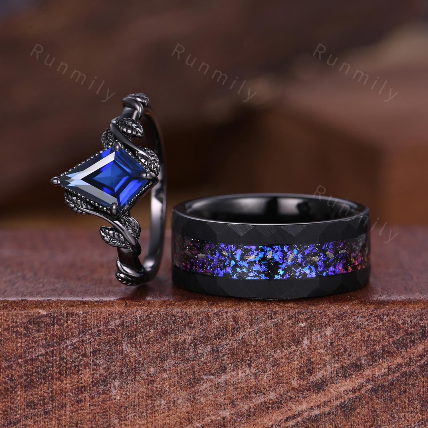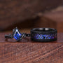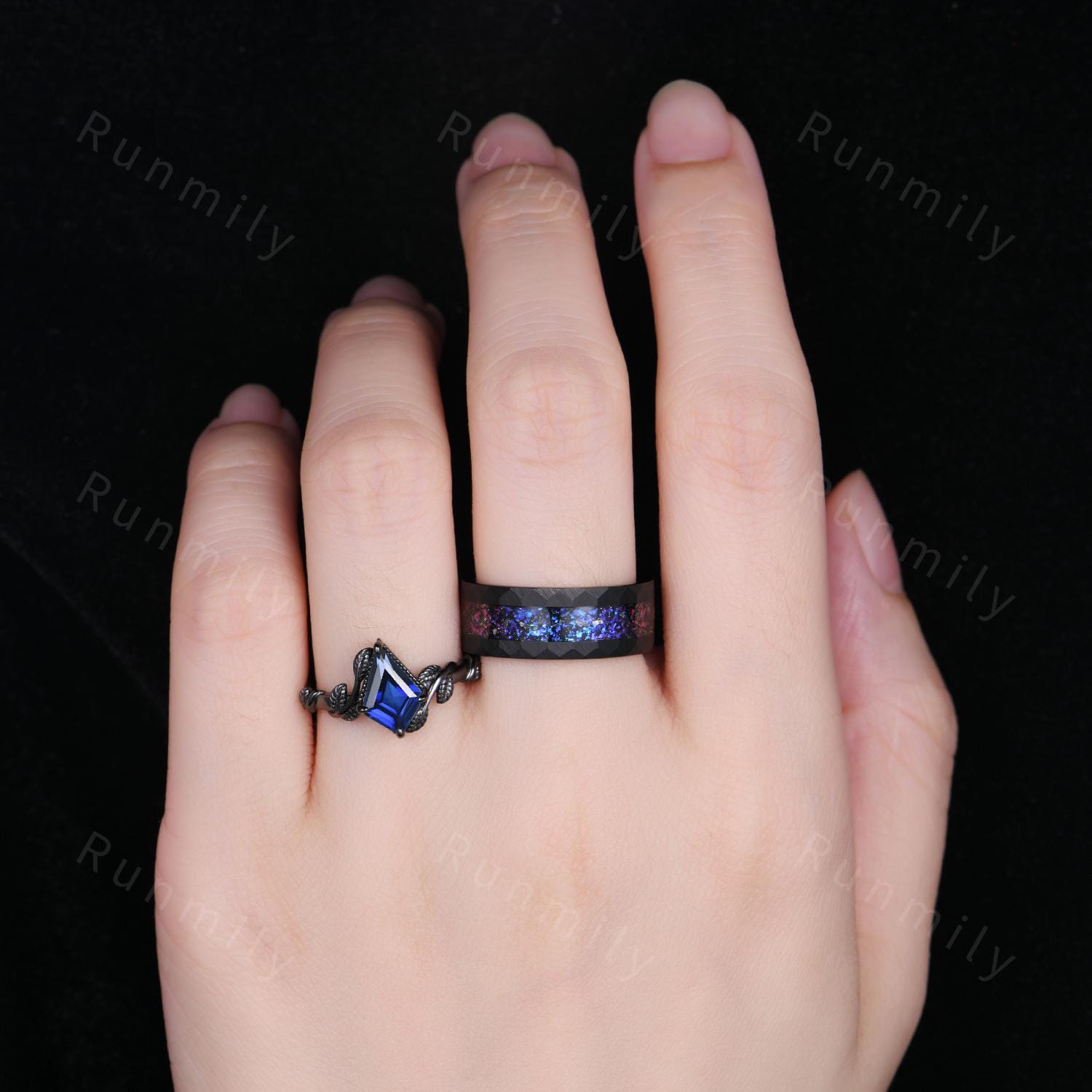Kite cut Blue Sapphire Rings, Orion Nebula Ring, Starry Sky Couples Ring Set, Vine Leaf Ring, Mens Galaxy Tungsten Band, September Rings