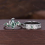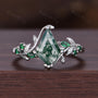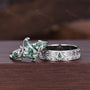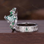 Here we have a Kite Cut Couple Rings Set Inspired Leaf Moss Agate Engagement Rings For Women Antique Leaf Band For Men Unique Wedding Anniversary Ring Set.