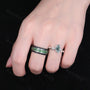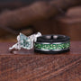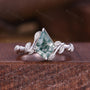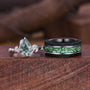 Kite cut Moss Agate Couples Ring Set Twig Leaf Moss Agate Ring for Women Vintage His and Hers Wedding Band Men's Tungsten Emerald Ring