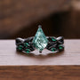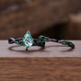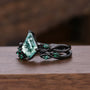 Kite Cut Moss Agate Engagement Ring Set Vintage Black Gold Emerald Ring Marquise Open Gap Band Bridal Set Anniversary Ring