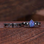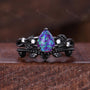 Lavender purple opal engagement ring set black gold branch leaf stacking ring Curved matching band unique art deco bridal wedding ring set