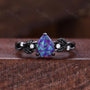 Here we have a Lavender purple opal engagement ring set black gold branch leaf stacking ring Curved matching band unique art deco bridal wedding ring set.