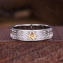 Leaf-Inspired Citrine Wedding Band Unique Kite cut Wedding Band Mens 5mm Ring His Engagement Ring Band November Birthstone Gift For Husband