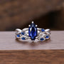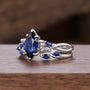Marquise Blue Sapphire Engagement Ring Set Sterling Silver Twig Twist Wedding Ring Open Gap Stacking Bridal Promise Ring