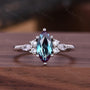 Marquise Cut Alexandrite Engagement Ring, Unique Moissanite Cluster Wedding Ring, Vintage June Birthstone White Gold Bridal Promise Ring