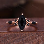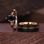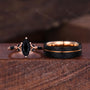 Marquise cut Black Onyx Couples Ring Rose Gold Matching Ring Set His and Hers Wedding Band Promise Ring For Couple Natural Black Gem Rings