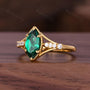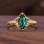 Marquise cut Emerald engagement ring Unique 14k solid gold ring for women art deco moissanite bridal promise ring May birthstone ring gift