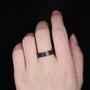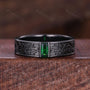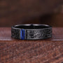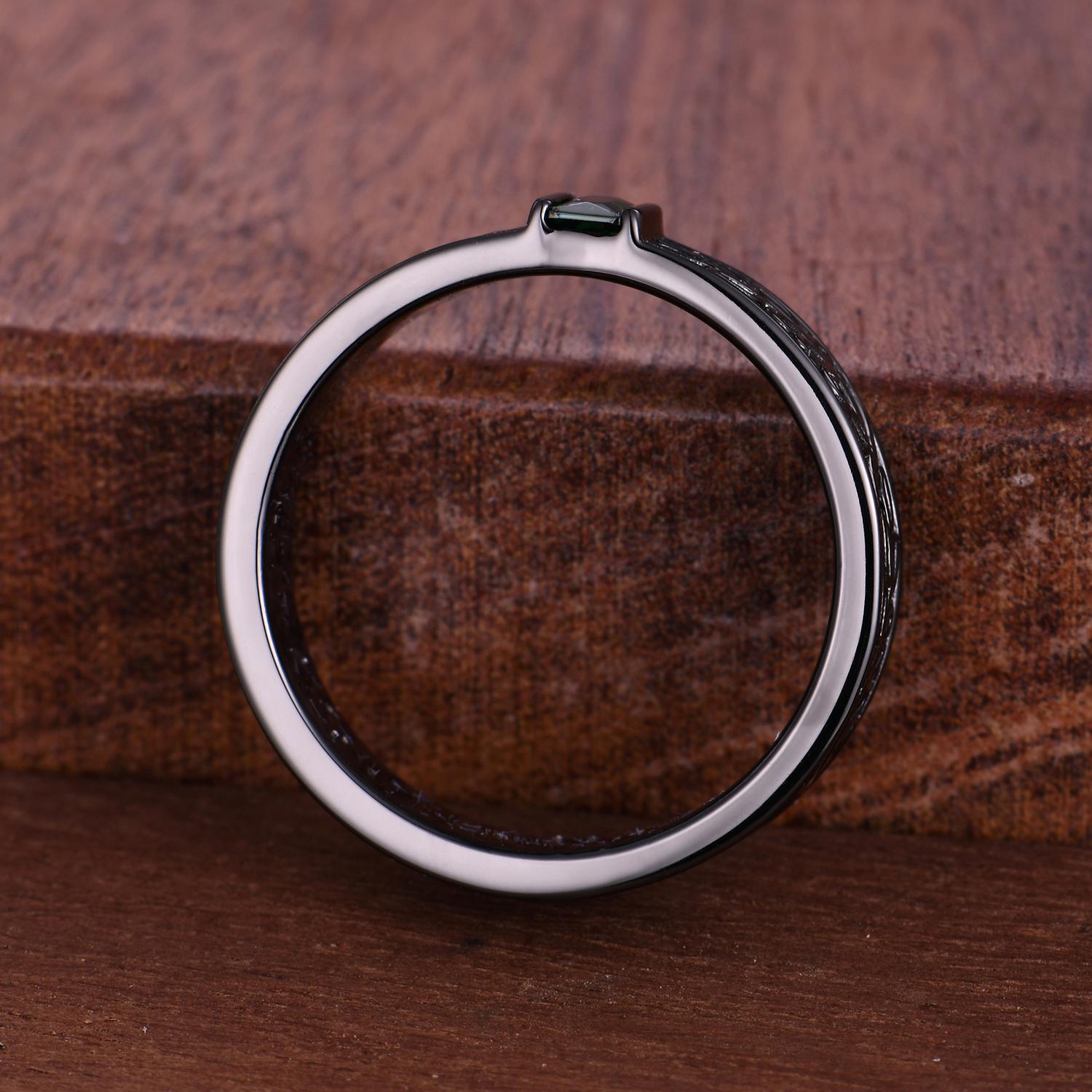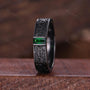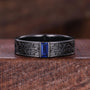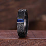 Here we have a Mens Baguette Cut Blue Sapphire Wedding Band Art Deco Leaf Design Band 5mm Black Gold Ring Unique Nature Inspired Stacking Band Retro Vintage Ring