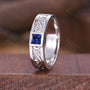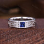 Men's Blue Sapphire Wedding Band White Gold Princess Cut Ring His Engagement Ring Vintage Wave Leaf Ring Mens Stacking Ring Gift For Husband