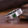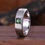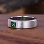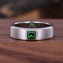 Men's Emerald Wedding Band White Gold Princess Cut Wedding Ring Emerald Engagement Ring Vintage Brushed Finish Ring Mens Stacking Ring