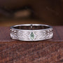 Mens Moss Agate Wedding Band Unique Kite cut Wedding Band For Mens Natural Green Agate Ring His Engagement Ring Band Leaf-Inspired Ring