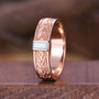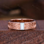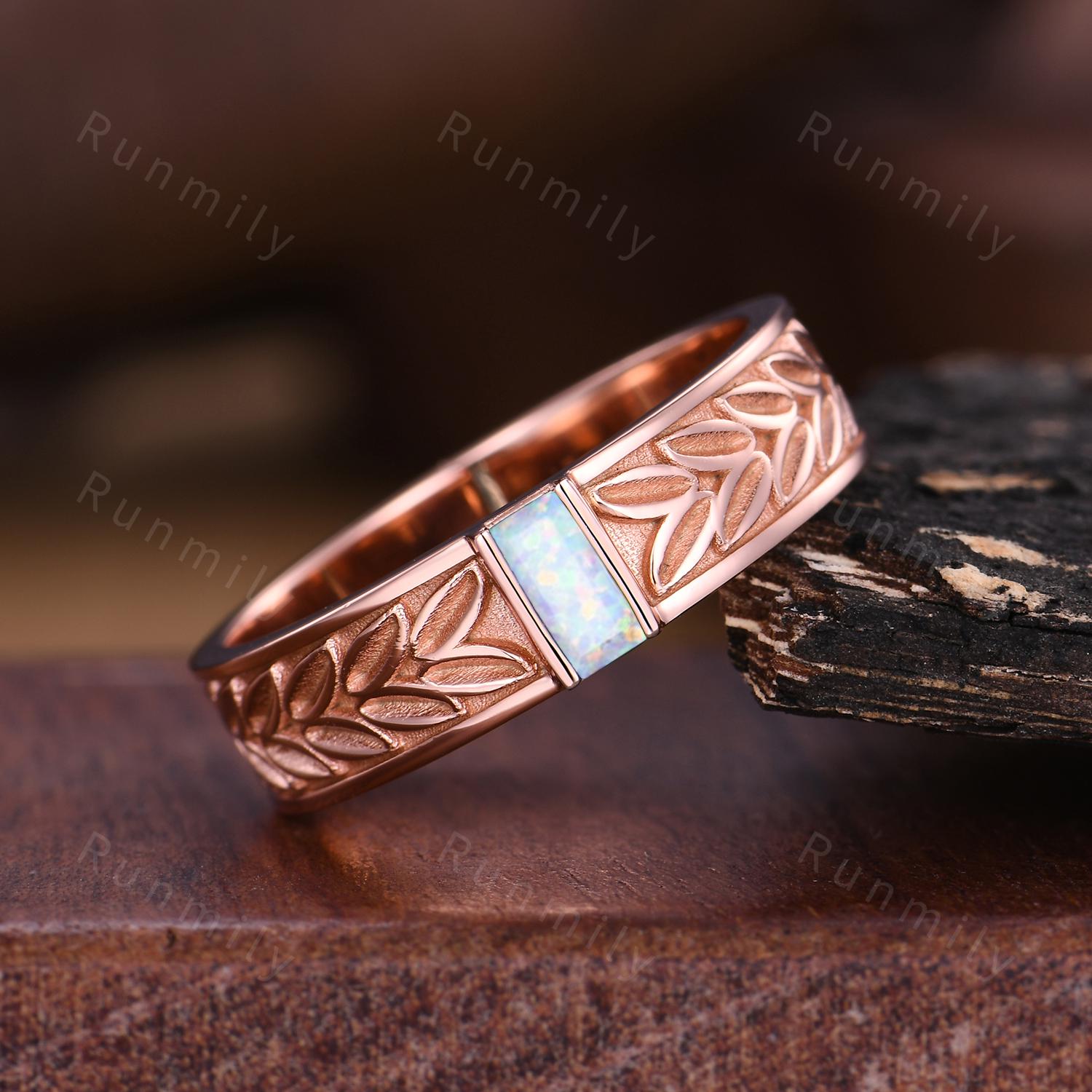 Mens White Opal Wedding Band Baguette Cut Opal Band 5mm Rose Gold Ring Mens Vine Leaf Stacking Matching Band Retro Vintage Ring Gift for Him