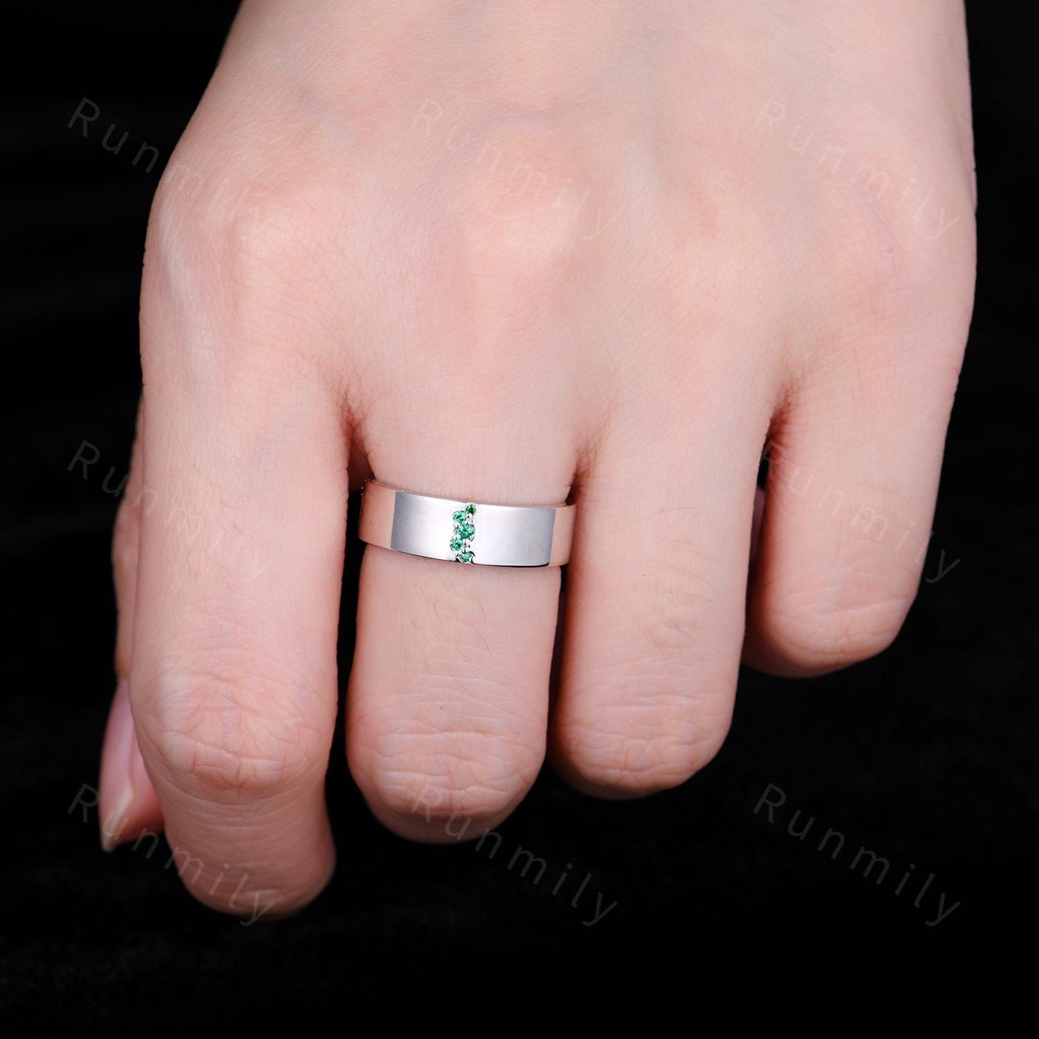 Minimalist Emerald Engagement Ring Mens Polished White Gold Wedding Band 5mm Men's Unique Stacking Ring Band Retro Vintage Five Stone Ring