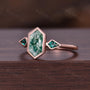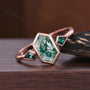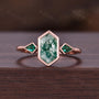 Moss Agate Emerald Engagement Ring Rose Gold Three Stone Ring For Women Hexagon Cut Bridal Ring Unique Women Promise Ring