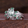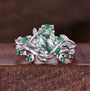 Moss Agate Emerald Engagement ring set Curved Leaf Emerald Stacking Wedding Band Oval cut Branch Ring Green Stones Bridal Promise Rings