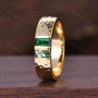 Here we have a Moss Agate Emerald Mens Wedding Band Mens Yellow Gold Band Baguette Green Agate Men's Ring Unique Hammered Stacking Ring Retro Vintage Band.