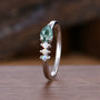 Moss agate opal wedding ban, pear cut wedding ring, art deco custom matching band, two gemstones anniversary ring Women