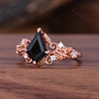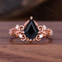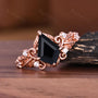Natural Black Onyx Engagement Ring Antique Leaf Style Ring Rose Gold Nature Inspired Handmade Ring Bridal Anniversary Gift Ring